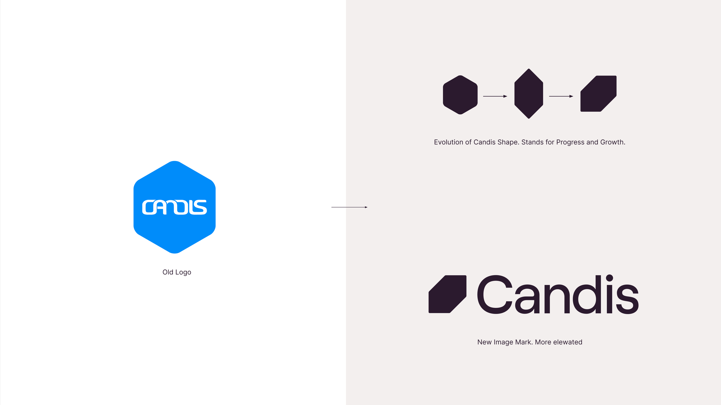 Evolution of Candis Image Mark. From a Hexagon to a more elevated Image Mark.